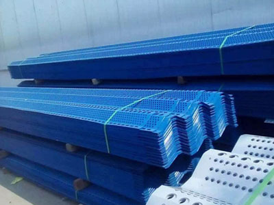 用途:主要用于港口,码头储煤厂及各种料场;钢铁、建材、水泥等企业各种露天料场的抑尘;农作物防风,沙化天气防尘等恶劣环境;铁路、公路煤炭集运站储煤场、建筑工地、道路扬尘、高速公路两侧等。单层防风抑尘墙抑尘效果可达65~85%,双层防风抑尘墙效果可达95%以上。
